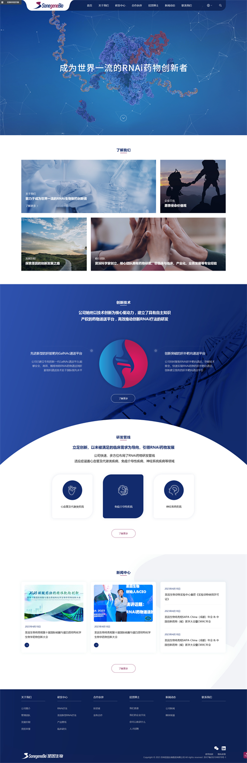 整个网站采用响应式设计,智能适配PC、Pad、手机等各个终端。中英文双版本,让国内外用户、投资者、上下游合作伙伴等更好的通过网站了解圣因生物是一家怎样的公司。